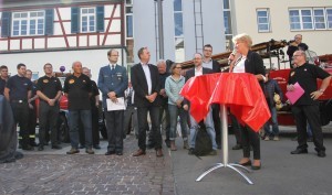 Oberbürgermeisterin Angelika Matt-Heidecker erinnerte an die Brandkatastrophe vor 325 Jahren und stellte fest, dass heute die Gebäude der Stadt nicht mehr so eng gebaut sind und heute die Freiwillige Feuerwehr Kirchheim unter Teck so gut ausgestattet ist, dass eine Brandkatastrophe wie vor 325 Jahren heute ausgeschlossen werden kann.