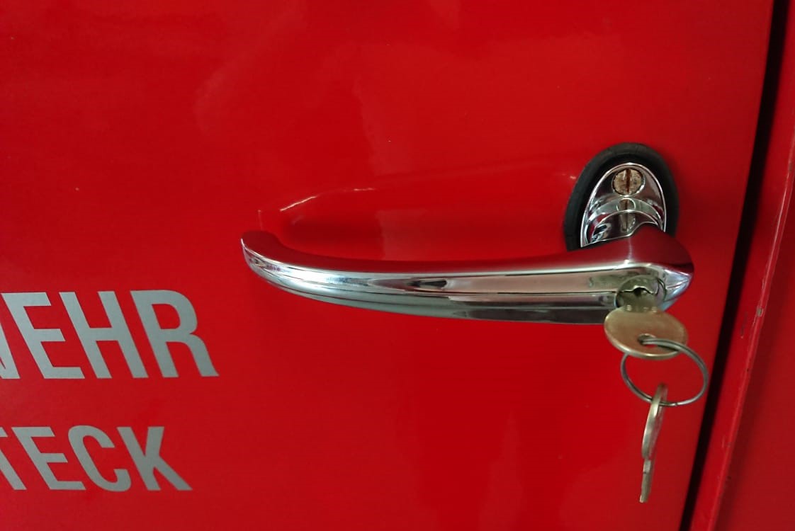 Dabei stellten unsere Schrauber fest, dass die Auspuffklappen fest waren und wieder gangbar gemacht werden mussten. Dafür wurden die Rohre zum Schalldämpfer und die Luftfilter ausgebaut um an die Klappen zu kommen. Die reparierten Auspuffklappen, die gereinigten Luftfilter wurden wieder eingebaut. Zudem bekam das LF an der Fahrertüre noch einen abschließbaren Türgriff damit bei zukünftigen Oldtimertreffen das Fahrzeug abgeschlossen werden kann.Die Motorbremse funktioniert jetzt auch wieder, jedoch wurde bei einer Testfahrt festgesellt dass die Bremsen nicht einwandfrei funtionieren,das heißt hier muss noch nach den Bremsbelägen/Bremszylinder geschaut werden.Der Kupplungsbelag am Schaltgetriebe muß so wie es aussieht auch noch erneuert werden.