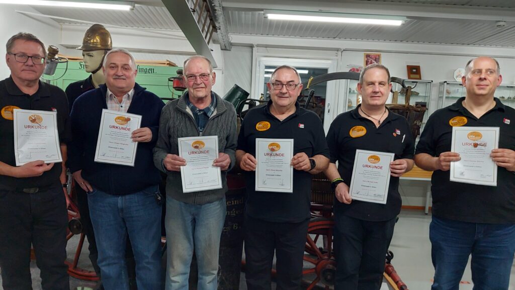 Der Erste Vorsitzende Roland Reiff warf einen Blick zurück und in die Zukunft auf das Geschehen im Vereinsleben. Im Jahr 2024 stand das 175-jährige Jubiläum der Freiwilligen Feuerwehr Kirchheim unter Teck, Abteilung Stadtmitte im Mittelpunkt und im Jahr 2025 waren es einige 150-jährige Feuerwehrjubiläen, bei denen unser Verein mitwirkte. An Pfingsten beteiligte sich unser Verein mit drei Fahrzeugen am ersten Kirchheimer Oldtimertreffen auf dem Kirchheimer Bahngelände. Neu waren die Öffnungszeiten des Kirchheimer Feuerwehrmuseums. An insgesamt 6 Sonntagen war das Museum von 10.30 bis 15.30 Uhr für die Besucher kostenlos geöffnet. Diese neuen Öffnungszeiten wurden von den zahlreich erschienen Besuchern recht rege genutzt. An unseren Oldtimern wurden einige Instandsetzungsmaßnahmen durchgeführt. Die endgültige Beladung des instandgesetzten Trockenlöschfahrzeuges TroTLF wurde ebenfalls vorgenommen. Den Stellplatz und den Lagerraum in der erschaffenen Kalthalle konnten wir ebenfalls Zug um Zug belegen. Der Norbert-Kugel-Saal war durch zahlreiche Veranstaltungen und sonstigen Feieranlässen gut gebucht. Viele Sonderführungen außerhalb der Öffnungszeiten wurden ebenfalls durchgeführt. Das Vereinsjahr startete traditionell mit der Jahreshauptversammlung im Februar. An dieser Wahlwurde Schatzmeister Michael Adler, Schriftführer Ulrich Kugel und Kassenprüfer Martin Reith sowie die Beisitzer Michael Krämer und Sabine Bäuchle gewählt. Neu in den Vereinsausschuss wurden die weiteren Beisitzer Markus Kielkopf und Wilfried Münchinger gewählt. Durch die vielen Baumaßnahmen rund um das Feuerwehrmuseum war die Fassade stark verschmutzt. Mit Unterstützung der Jugendfeuerwehr wurde diese Außenhülle des Museums wieder auf Hochglanz gebracht. Rechtzeitig zur Museums-Saisoneröffnung haben wir auf verschiedene Weise für unser Feuerwehrmuseum geworben. Wir nahmen an diversen Veranstaltungen recht zahlreich teil. Nicht nur das erste Oldtimertreffen, an dem wir mit drei Fahrzeugen teilnahmen, auch an dem AKB-Spendenlauf nahmen wieder einige Vereinsmitglieder teil. Am 150-jährigen Feuerwehrjubiläum und zugleich stattfindenden Kreisfeuerwehrtag in Jesingen beteiligten wir uns an dem Festzug mit zwei Fahrzeugen und zahlreichen Mitgliedern. Mit der grünen Drehleiter waren wir, wie in jedem Jahr, Teilnehmer an dem Vinzenzi-Festumzug in Wendlingen. In Nabern zu deren 150-jährigen Jubiläum waren wir ebenfalls präsent. Im Rahmen der Sommertour besuchte uns der Spitzenkandidat der Grünen beim Landtagswahlkampf Cem Özdemir zusammen mit dem Landtagsabgeordneten und Fraktionsvorsitzenden Andreas Schwarz im Feuerwehrmuseum. Mit zwei Magirus-Rundhauberfahrzeugen besuchten wir das Oldtimertreffen anlässlich des 150-jährigen Feuerwehrjubiläums der Dettinger Freiwilligen Feuerwehr. Nachdem die Tiefbaumaßnahmen für die Fernwärmeversorgung vor dem Feuerwehrmuseum abgeschlossen waren, konnten wir wieder die Sirene und die zwei Hydranten mit Hilfe des Hebe-Fahrzeuges von unserem Mitglied Richard Leconte vor dem Museumsgelände platzieren. Viele Vereine und sonstige Gruppierungen konnten im Laufe des Jahres durch fachkundige Vereinsmitglieder bei Führungen durch das Museum begleitet werden. Im vergangenen Jahr waren es insgesamt 1.317 Personen, die unser Feuerwehrmuseum besuchten.